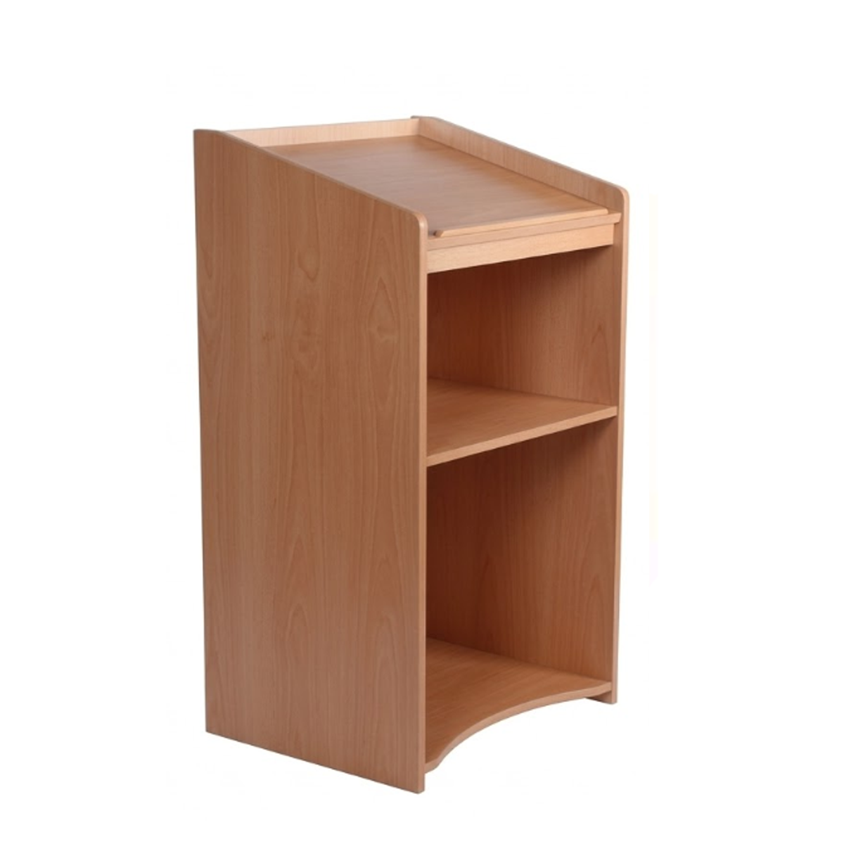 Podium en madera, elegante, base circular.